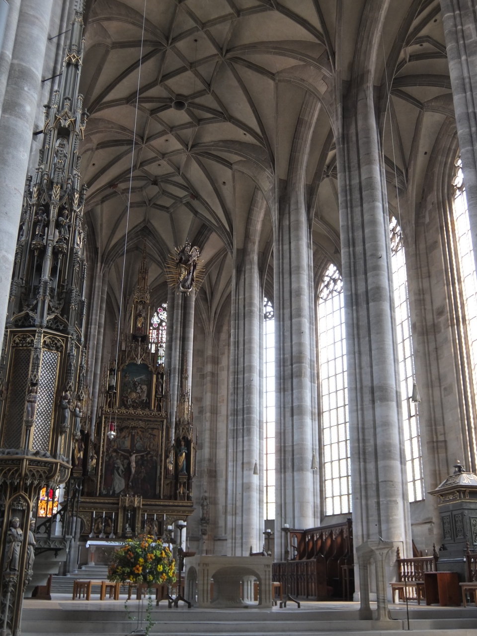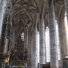 内部は、身廊と側廊が同じ高さのハレンキルへ型で、とても明るく、開放的な雰囲気です。