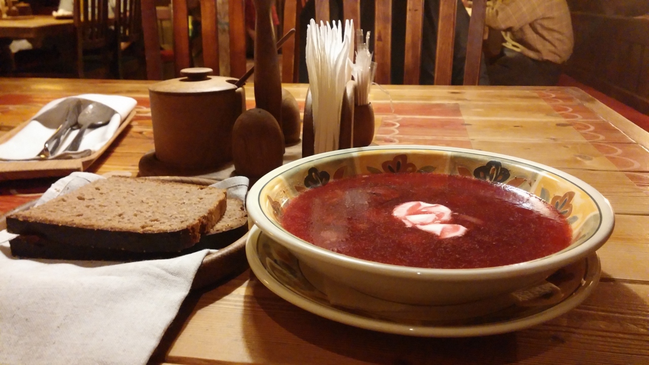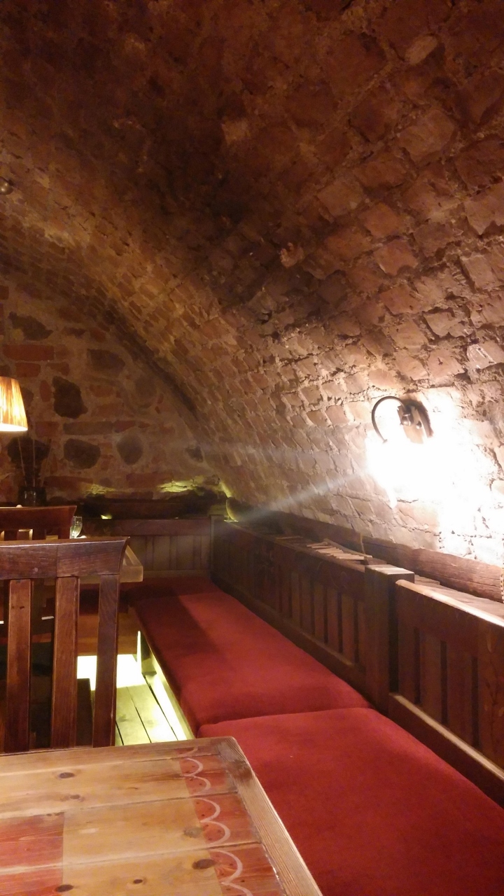 レストランのデザインは、防衛の目的で隠された城のようにとても面白いです。伝統的なパンとスープ、地元の肉料理などを注文されました。またビールはその国で有名です。そのレストランは非常に有名でも、食べ物の価格は低いです。