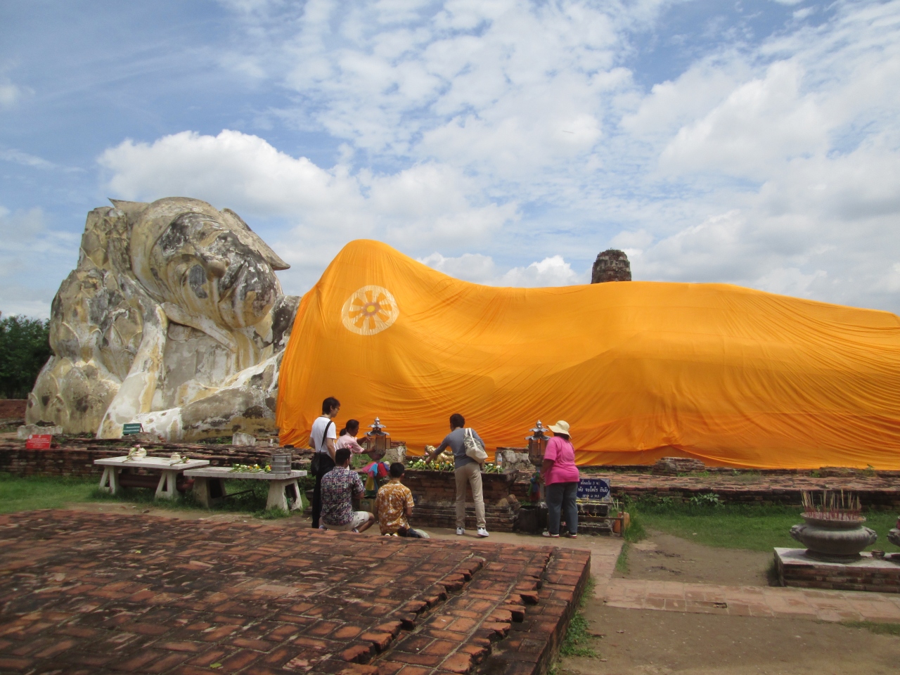 ワットローカヤースッターに本堂、仏塔はなく、漆喰で作られた真っ白な寝釈迦像で、日本にも寝釈迦像はありますが、これほど巨大なものは見る機会が少ないと思います。アユタヤツアーのガイドさんがバンコクに戻る際、寄ってくれた場所なので、うっかりしていると通り過ぎてしまうので注意が必要でした。