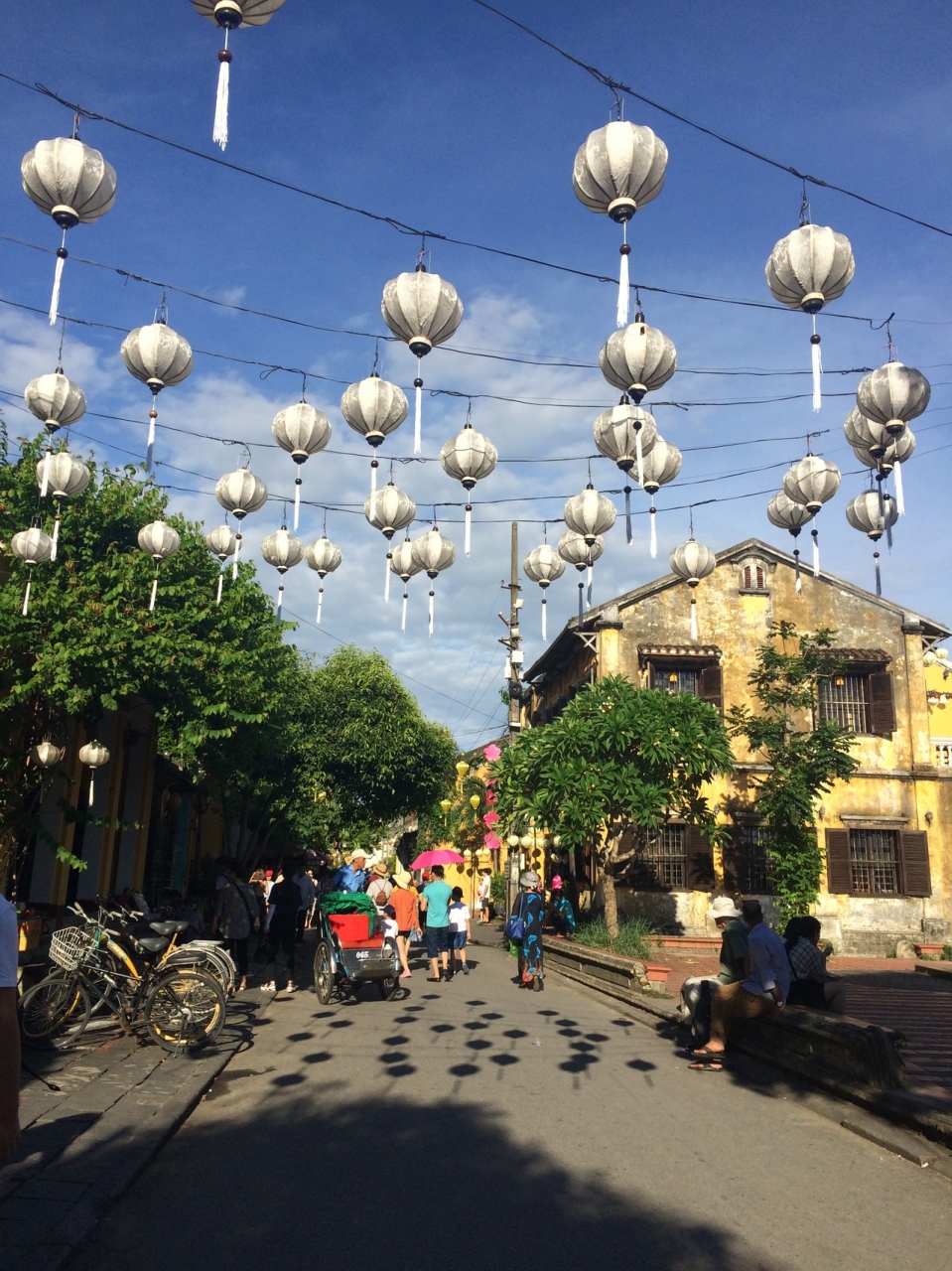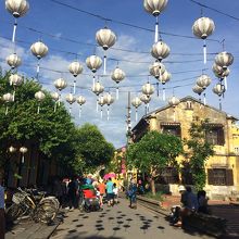 ベトナム、ホイアンの旧市街地は、黄色の建物が目を引く通りです。