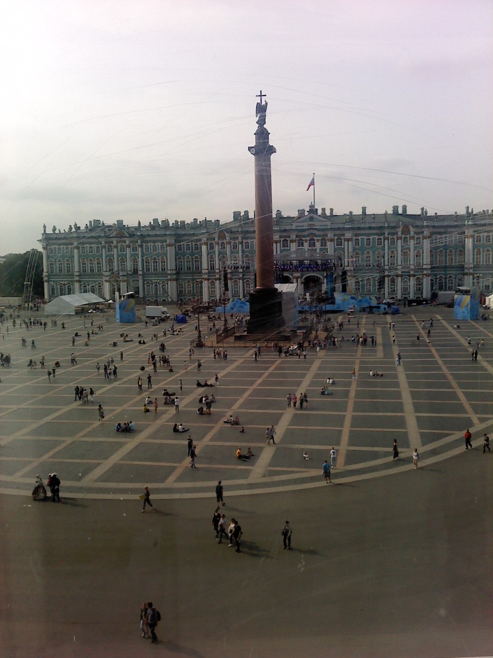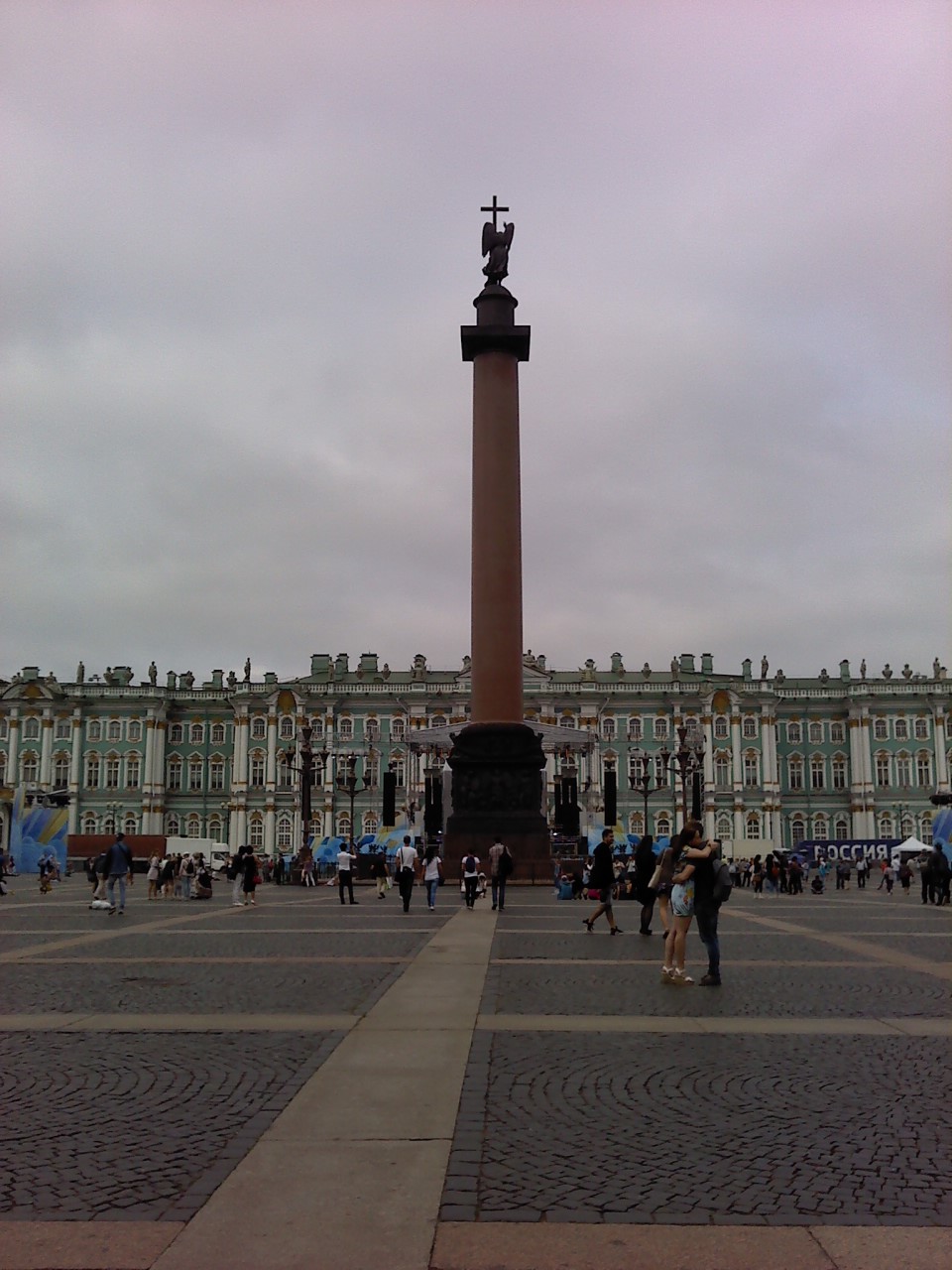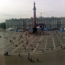 広場中央のアレクサンドルの円柱がかつての権力の象徴でしょう。