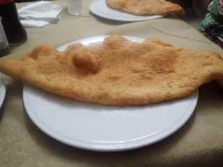 事前に地元の人からここのおすすめはフライドピッツァだと聞いていたので、ハムとリコッタチーズ入りをオーダー。あとアランチーニを頼みました。