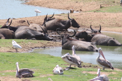 スリランカでサファリというとヤーラ国立公園です。スリランカの南東部にある国立公園で広大なエリヤですが、一般に開放しているのはその一部です。スリランカ・ヒョウの見られる可能性の高い公園でもあります。今回は1度だけ見ることが出来ました。また、この公園はインド洋に面していますが、2004年12月のスマトラ沖地震による犠牲者を悼む碑がありました。この地区では47人が犠牲になり、日本人旅行者も含まれていたとのことでした。