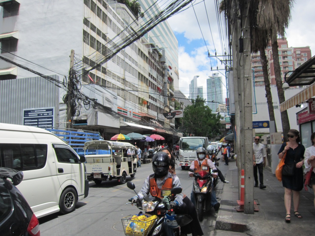 駅の出口や大きな通りから入る路地(ソイ)の入り口に乗り場があり、待機しています。ライセンスを持った、正規の運転手はオレンジのベストを着ているので、利用する時は必ずオレンジのベストを着ているバイクに乗りましょう。渋滞の多いバンコクでは非常に使い勝手が良いのですが、事故も多く、非常に危険です。ほとんどのタイ人は一回は事故にあったことがあり、怪我をした経験があるそうです。