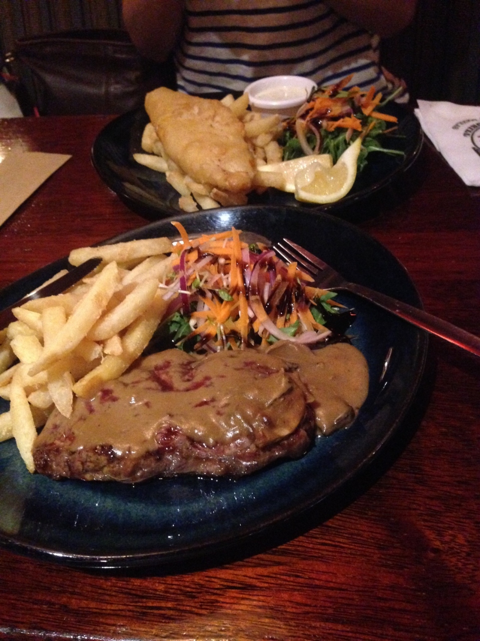 エスプラネード沿いのお店。入り口はオープンな感じで中の様子もよく見えて入りやすいです。注文カウンターで食べ物や飲み物を注文するらしいのですが、店員さんが店内を回っているので、店員さんに直接注文しました。普通に持ってきてもらえるので、座って注文した方が楽チンかも。ステーキもあっさりとした感じで、脂っこくありませんでした。ビールとステーキで1人40ドルちょっと超えるくらい。日本の旅行者もよく来ているみたい、肝心の味はとても美味しいです。