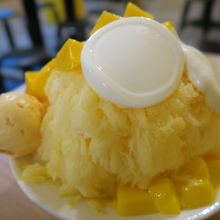 士林駅の近くで、高架下にあります。こちらは、普通の水を凍らせたかき氷ですが、氷の掻き方が変わっていて、基隆の泡泡氷のようななめらかな食感で、シロップで味がついているので、シャーベットのようでした。マンゴーは片面にしか乗っていませんが、ボリュームはあるので、二人で一つで十分だと思います。一人一品以上の注文が必要ですが、ドリンクや豆花などほかのメニューも充実していました。