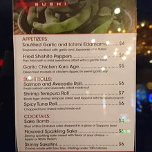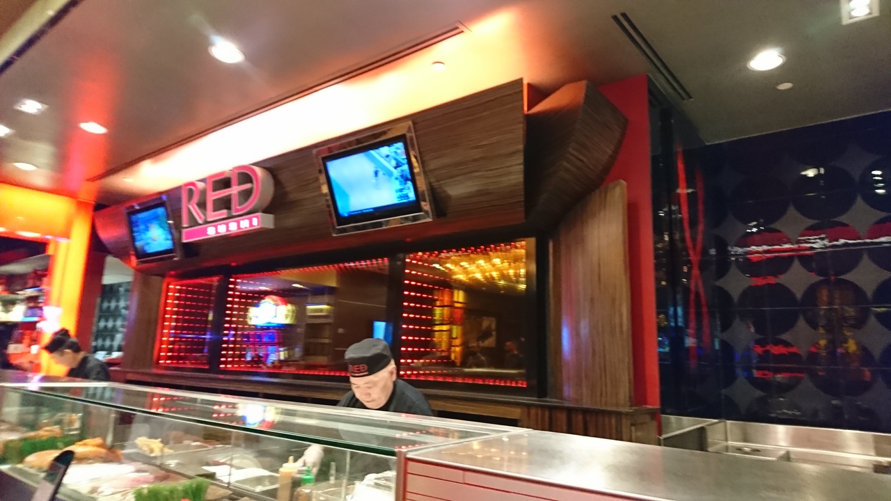 Golden Nuggetの中にあるお寿司屋さん。日本人(多分)の板前さん、店員さんもいて、カウンターには魚が並んでいる本格的なお寿司屋さんです。価格はラスベガス価格ですが、毎日PM4人~6時に行われているハッピーアワー(メニューにはSAKETINI TIMEと書いてあった)がオススメです。唐揚げが5ドル、サーモンアボカドロールが6ドル、海老天ぷらロールが7ドル、スパイシーツナロールが6ドルとお得。握りや巻物もありますが、せっかくなのでアメリカ発祥のお寿司の方が外れたときのショックが少ないと考えオーダー。天ぷらのお寿司はさくさくした食感がこれまでに経験をしたものではなく新鮮。サーモン寿司は日本でも食べたような懐かしい味。スパイシーツナは、スパイシーな寿司も意外に合うと思いました。唐揚げは少し甘めのネギソースのお陰で、少しパサパサ気味の肉も美味しく食べられました。ハンバーガーやピザ、ステーキに飽きたら、ちょうどよいお店だと思います。店員さんは明るく、好感度もよかったです。