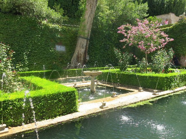 シエラネバダ山脈の雪解け水を利用した水路や噴水が設けられており、とても涼しげな演出がされています。