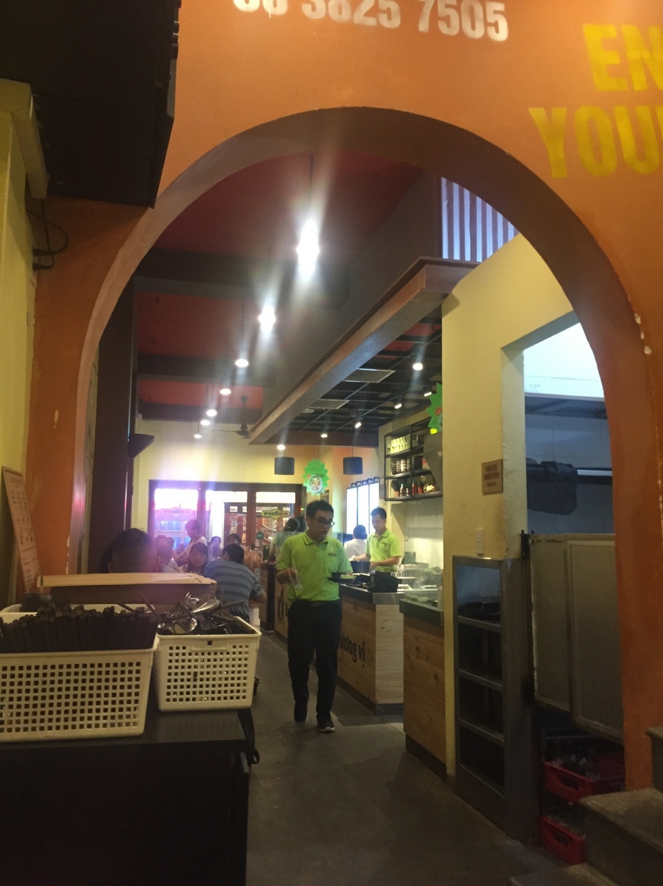 この店はドンコイ通りにあります。この店はとりあえず入りやすくお安く食べる事が出来ます。店内はファーストフード見たいな店内で注文は入って直ぐのカウンターで初めに注文して番号札をもらいます。テーブルで待っていると持って来てくれます。メニューはいろいろあり料理は美味しかったです
