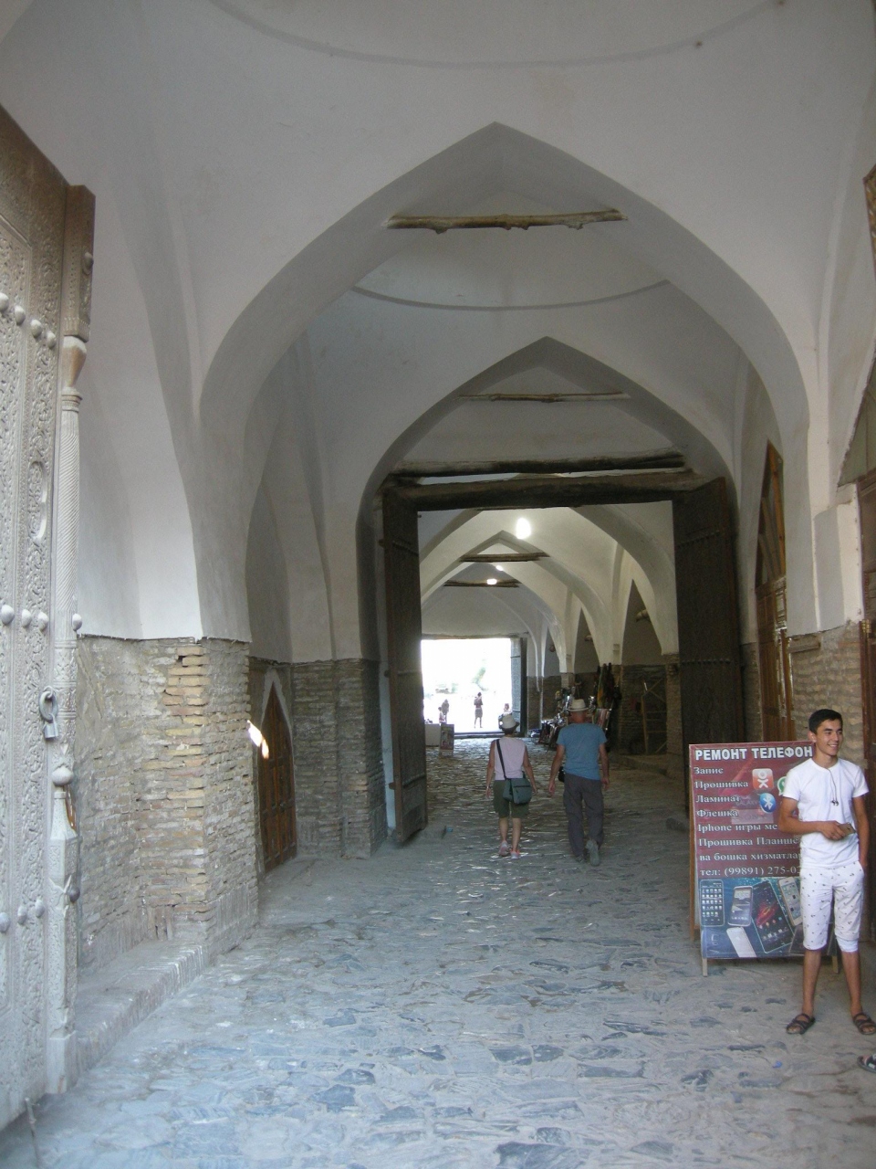 イチャン・カラの東門はかつて奴隷市があったことから「奴隷の門」とも呼ばれていたそうです。現在は門の周辺はお土産を売る露店商が通りの両側に立ちにぎやかに観光客と商売をしています。門の中は薄暗いのですが、床屋さんらしきみせが並んでいたりして、他の門とは少し雰囲気が違います。