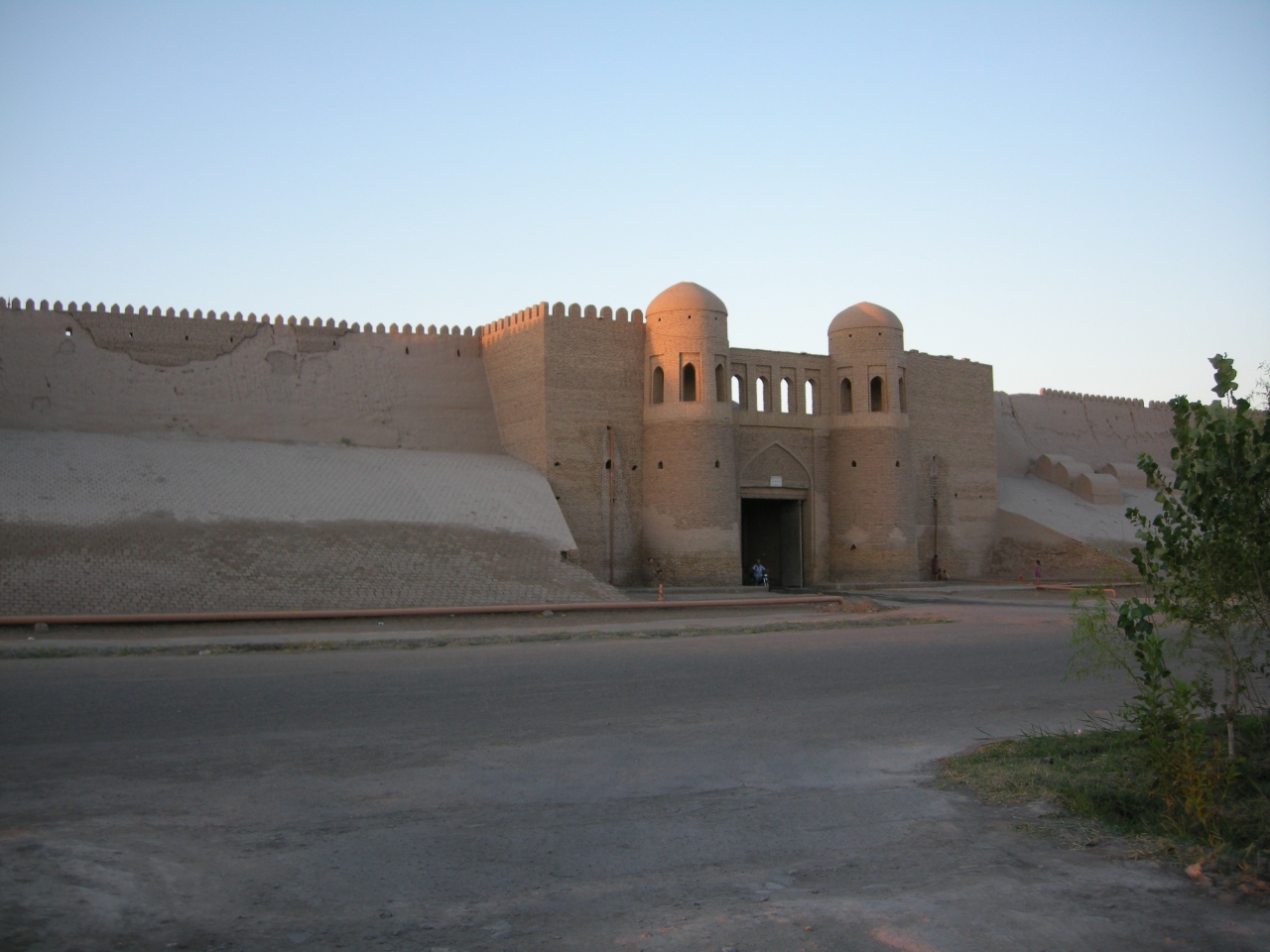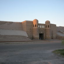 私が宿泊していたアジア・ヒヴァ・ホテルの目と鼻の先にある門でした。ここからイチャン・カラ内に入ると、イスラーム・ホジャメドレセにたどり着くまで、小さな民家が続いています。中をのぞくと木彫細工を作っている職人さんの家などが多いようでした。小さい子供がお土産を売ろうとにこやかにあいさつして来たり、なかなかのどかな道で面白かったです。夕方散策に出かけて、帰りが暗くなってしまったのですが、近所の子供が走り寄ってきてライトで足元を照らしながら門まで送ってくれました。