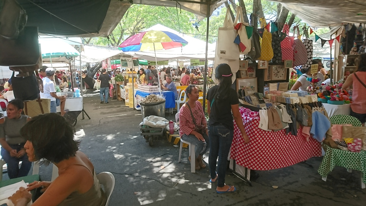 マカティのグリーンベルト1から歩いて10分程の場所で行われている日曜市です。アート作品や雑貨、育て方にこだわった食材を買うことができます。