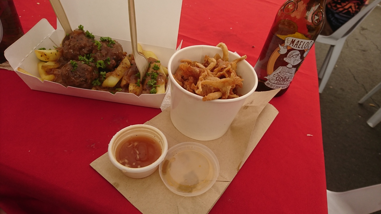 食べ物を売るお店もあり、こだわりビーフを使ったハンバーガーやマッシュルームフライ、ベルギー風フライドポテトを昼食に頂きました。