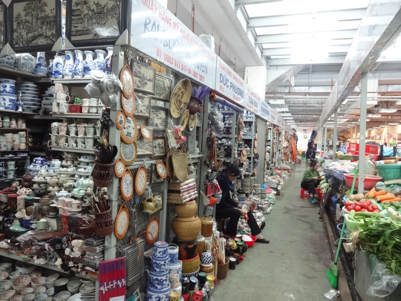 正面入口の右脇から地下に降りることが出来ます。そこには、日用品の陶器(バッチャン焼き)や乾物などの食材が売られています。
