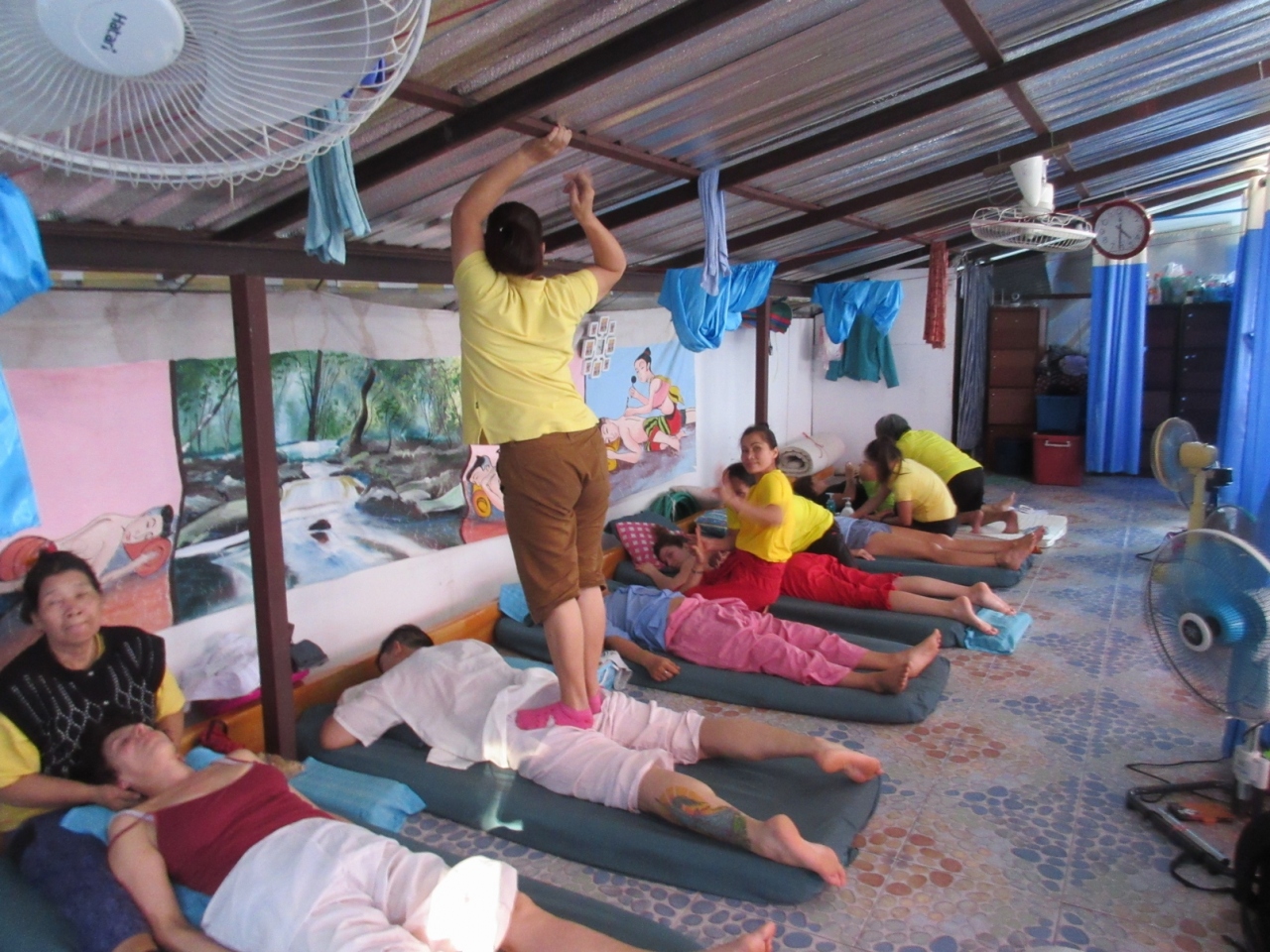 ズラリと並んでゴロリして施術を受けます。