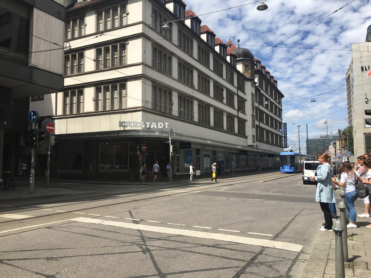 地上では目の前をトラムが走っていますが、地下では駅と直結しています。