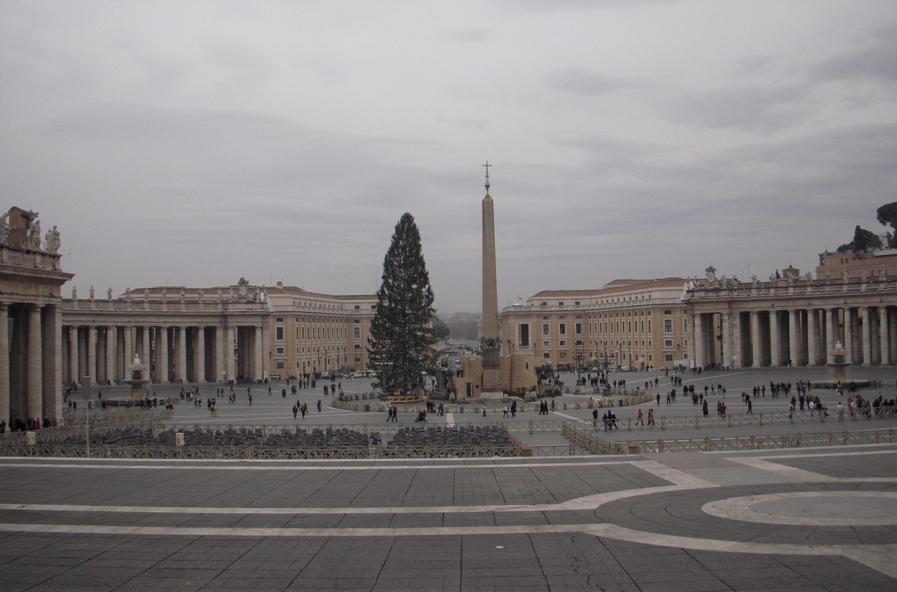 サン ピエトロ広場は、サン ピエトロ大聖堂に面したカトリックの聖地であり、左右に二列の円柱と聖人像が並ぶ楕円形の大きな30万人収容できる広場でした。