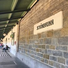 シェーンブルンと書かれた駅名の文字を眺めながら石積みのプラットホームで列車の到着をゆっくり待つ・・・ウィーンにいることを実感できます~