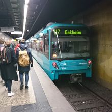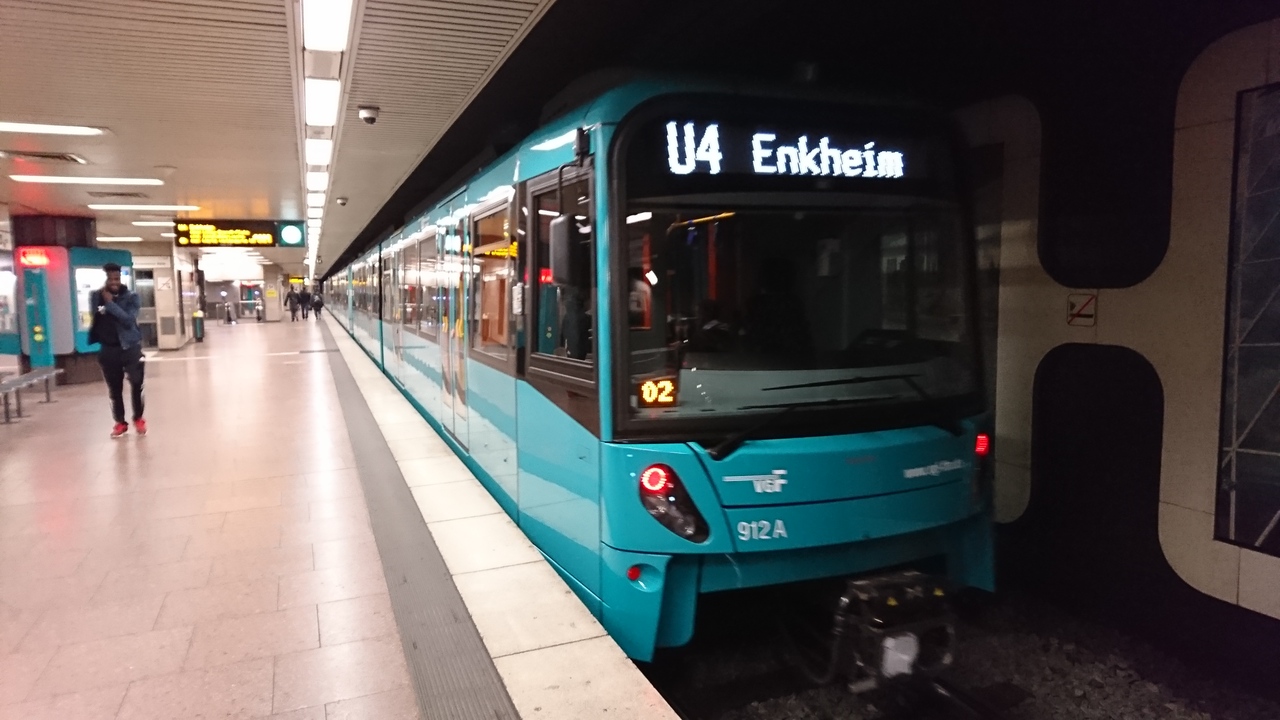 フランクフルト市内の交通は、フランクフルト市交通局(VGF)が運営するUバーンと、ライン・マイン・公共交通機関連合(RMV)が運営するSバーンがあり、切符は共通なので、有効期間であれば乗り換えも自由です。Uバーンは、地下鉄というよりは、路面電車が地下を走っているという印象で、郊外では地下を走らず、専用の線路や軌道を走ります。Sバーンも同じですが、同じ駅のホームに複数の路線が走るので、ホームにある案内板(今度の電車の案内)や電車の行き先もしくは系統番号をしっかりと確認しないと、全く異なるところに行ってしまうこともあるので注意。特にドイツ語が読めない場合、地名を覚えるのも苦労するので、系統番号で確認すると間違いはないと思います。時間か読めるので、市内移動には欠かせない存在です。
