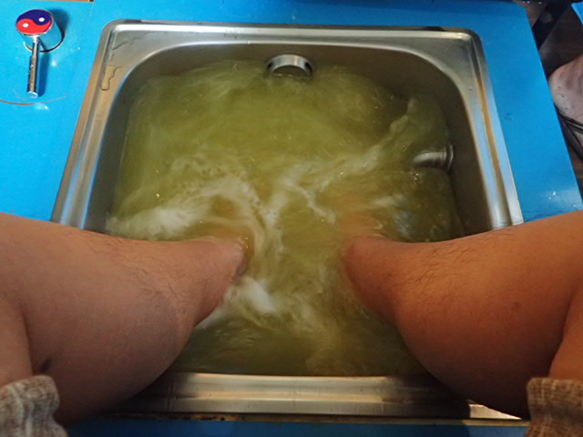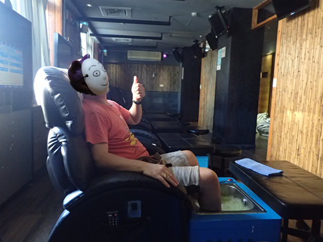 まずは足湯みたいな機械で15分ほど足をジャグジー状態でほぐします。