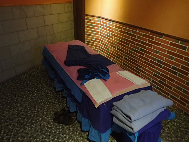 そしてマッサージの部屋に移ります、施術用の服も用意されていました。