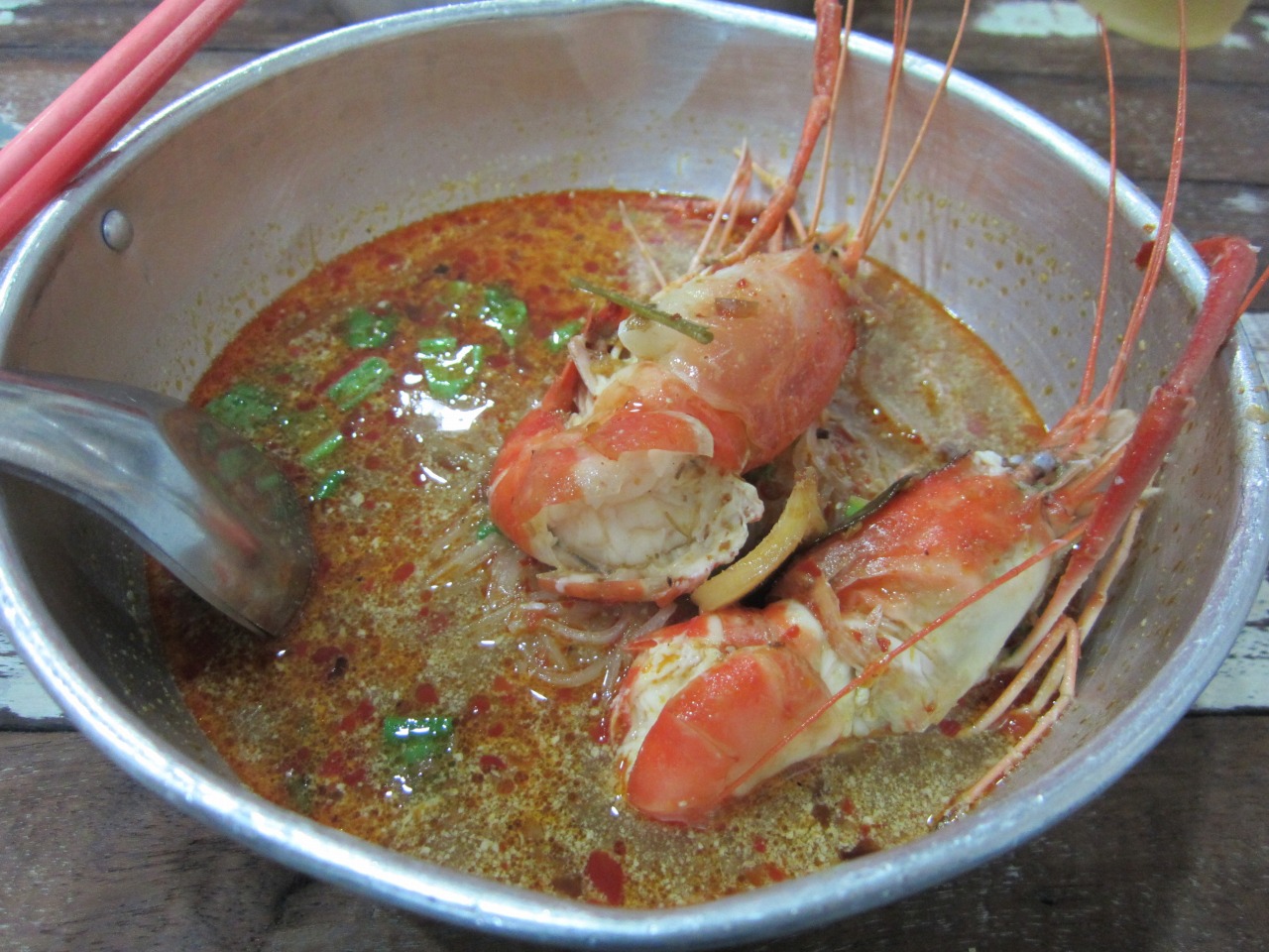 日本のテレビでも取り上げられ、地元バンコクでも大人気の店との触れ込みを聞いて行きました。評判の手長エビ2尾が入ったトムヤムクンラーメンを食べたのですが、正直、『え?』って感じでした。確かにビジュアル的には良いのですが、味はちょっと酸味が強い普通のトムヤムクンで、1回食べれば十分です。私が行ったときのお客は、ほぼ観光客風の外国人でした。