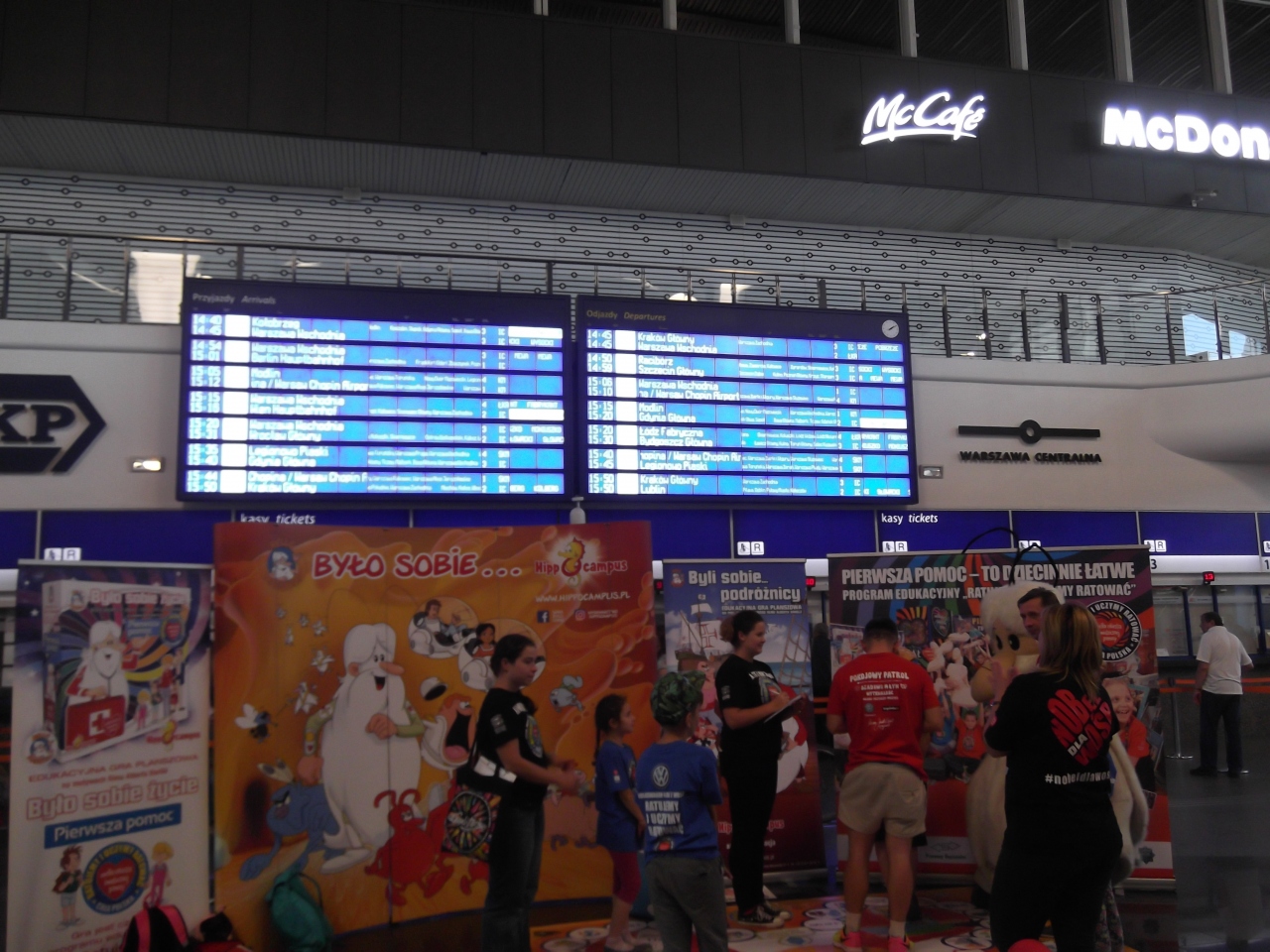 空港からワルシャワ中央駅は直結。地下鉄(地下鉄1号線)とは連絡はしていない。クラクフ行きのチケットは、窓口で買える。英語は通じない。行き先、日時、料金、等級は事前に、HPで検索がベターで、紙に書いて渡せば、なんとなく買える。英語が通じるカウンターは行列。地下にはお店が並んでいる。旅の起点の駅。