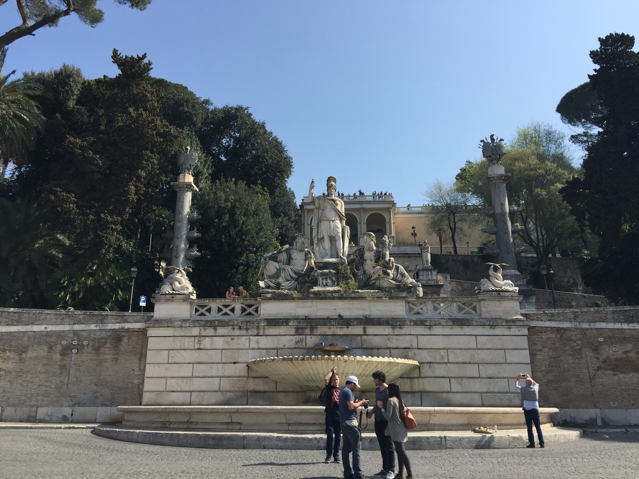 ポポロ広場1300年を「聖年」と定めて以来、北からのローマ巡礼の人々の入口に当たるポポロ門を有する広場。ポポロ広場から高台に行きポポロ広場を見渡すとローマの街中も眺められるのでぜひ階段を登ってみて欲しい。広場はかなり広いせいか混雑を感じなかった。