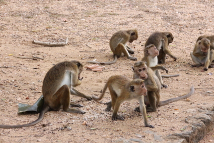 ガル・ヴィハーラは、ポロンナルワ遺跡公園の北の外れの方にあります。通路を進んでいくと、たくさんのサルがいます。また、スリランカオオトカゲものっそりのっそりと歩いています。4体の仏像がありますが、元は手前にある石を含めた大きな石だったそうで、その中ほどから彫り進めたものだそうです。現在の道具を使っても大変な作業を当時の道具類でよく彫ったものだと思います。大きさをいうと、高さでは立像の7m、大きさでは涅槃像の14mとのことです。