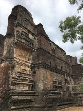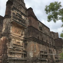 ガル ヴィハーラの南側で、キリ・ヴィハーラと並ぶ様に建っています。キリ・ヴィハーラは元の姿を見せていますが、このランカティラカはかなり崩れています。但し、大きさがあり、高さは17.5m、幅が18m、そして、奥行きは52mあるとのことです。壁を見ると、大きさに似合わず細かな彫刻などが施されていて、往時はさぞ美しかっただろうと思わせます。