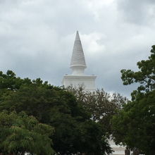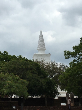 キリ・ヴィハーラはガル・ヴィハーラの南側にあります。キリとはシンハラ語でミルクのことだそうで、キリ・ヴィハーラは乳白色の寺院という意味になります。現在(2017年)はその名の通り、真っ白ですが、これは近年修復されたからで、それまでは古色蒼然とした茶色だったとのことです。なお、ガル・ヴィハーラの方からくると台地に上がる階段が2つあります。その間、わずか5mくらいですが左側からは寺院外の扱いで靴を脱ぐ必要がありません。