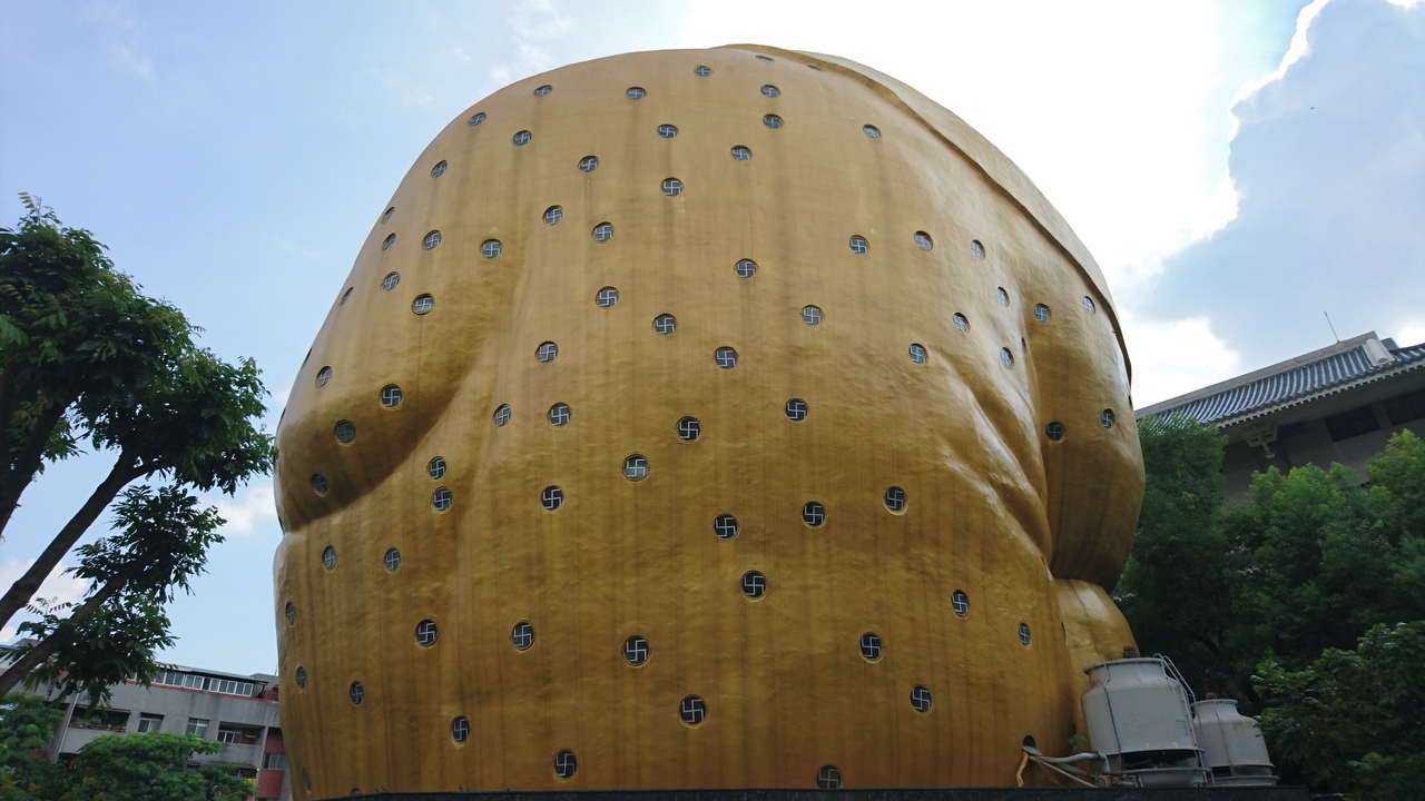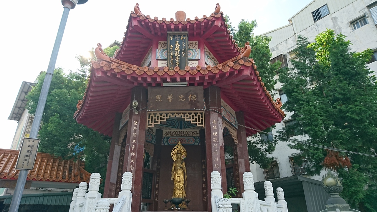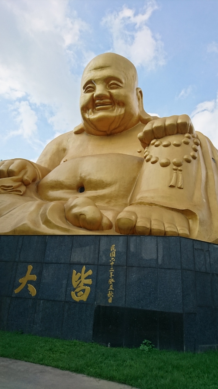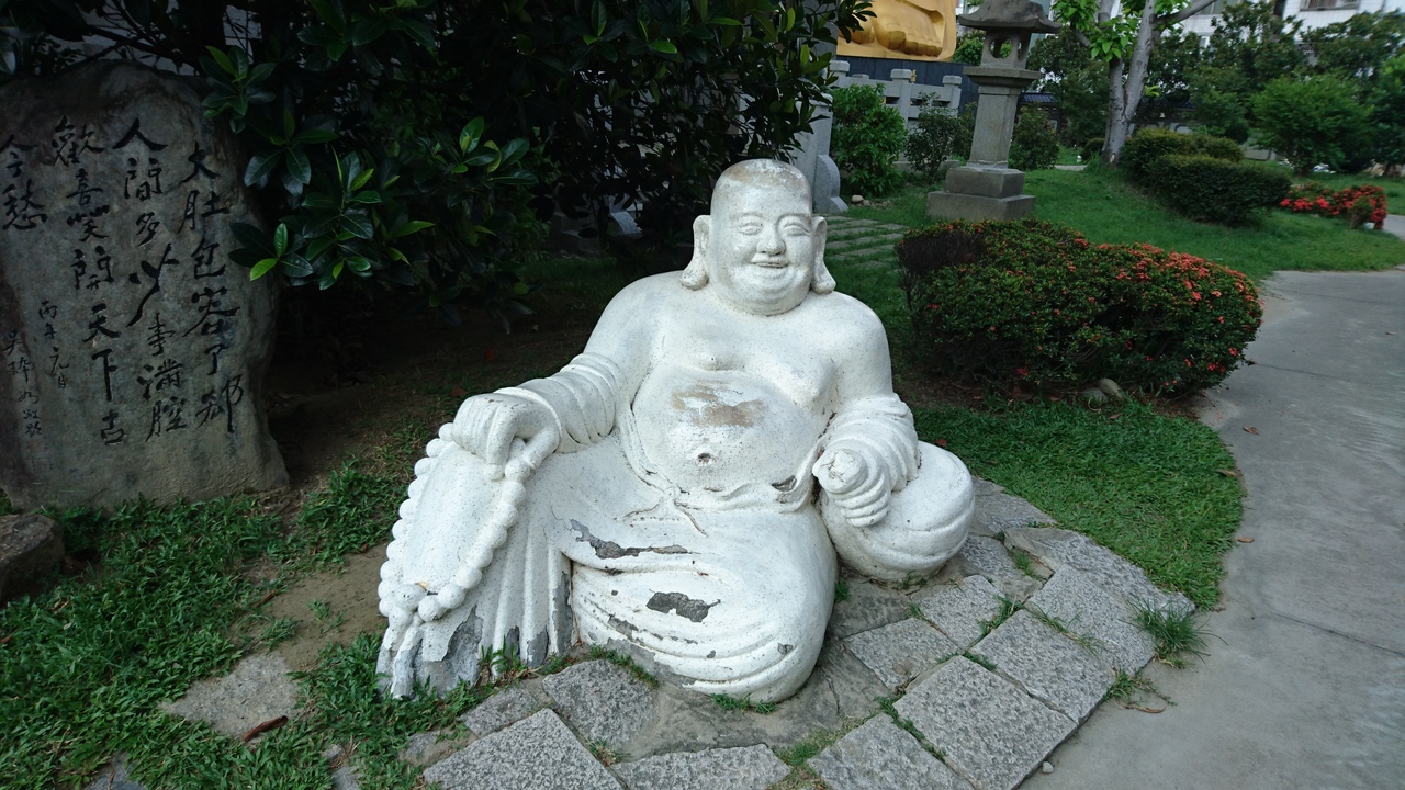 入口を入って右手に行くと大きな布袋様が見えて来ます。巨大で金色、凄い迫力です。布袋様はニコニコしていて、こちらまで笑顔になります。無料で見学できますが、敷地内に統治時代に亡くなられた日本人の共同墓地があったのでそちらに少し寄付してきました。帰りのバス停は宝覚寺前の反対側(学校前)にあります。