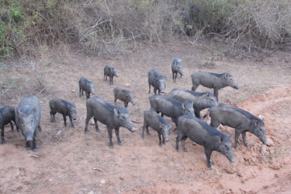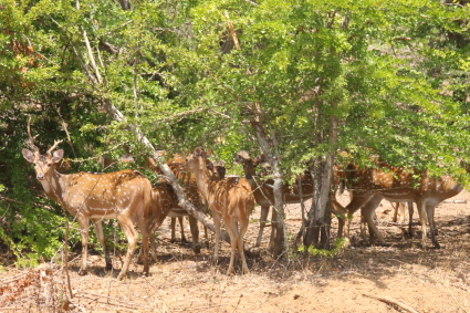 スリランカではヤーラ国立公園でのサファリが1番有名です。今回は午後2時30分からのサファリと終日のサファリの2回しました。初めの午後のサファリではスリランカ・ヒョウを見ることが出来ましたが、木に登って居眠りをしているところで、後ろ脚方向から見えるだけで顔の表情は分かりませんでした。それでもヤーラ中にいたすべてのサファリカーが集まったのではないかというくらい、ものすごい集中ぶりです。(サファリカーは無線を積んでいます)ヤーラ国立公園でもヒョウは超貴重動物で、いかに見られないかを実感しました。そのヒョウですが、翌日の終日サファリではかすりもしませんでした。