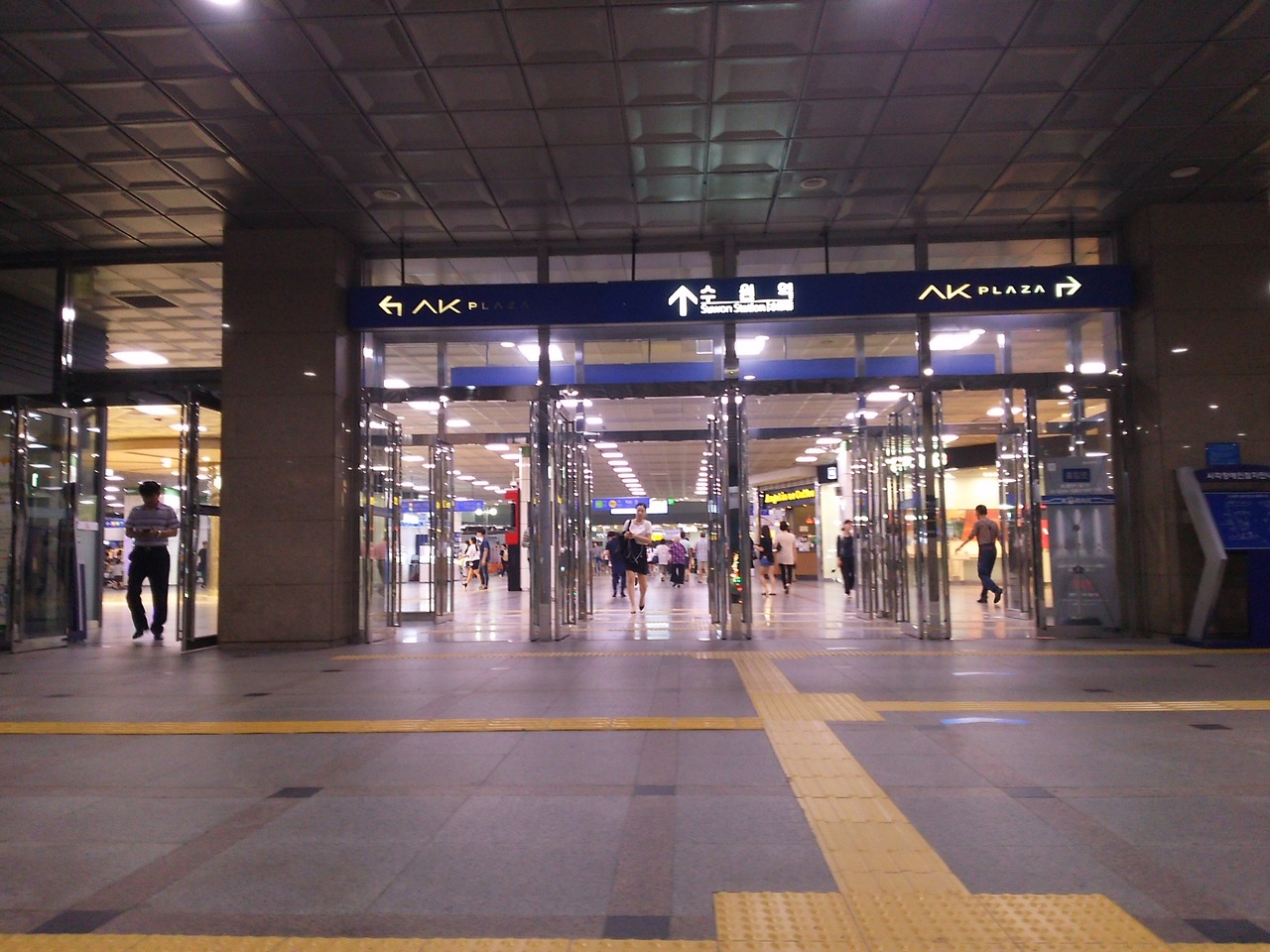 ソウルからKOREILの急行で30分、地下鉄だと1時間弱で行くことができます。大きな駅で不安はありません。水原華城に行くには東口からタクシーが早いでしょうか。帰りはバスで駅に戻ったのですが、西口に到着しました。路線によるのかもしれません。