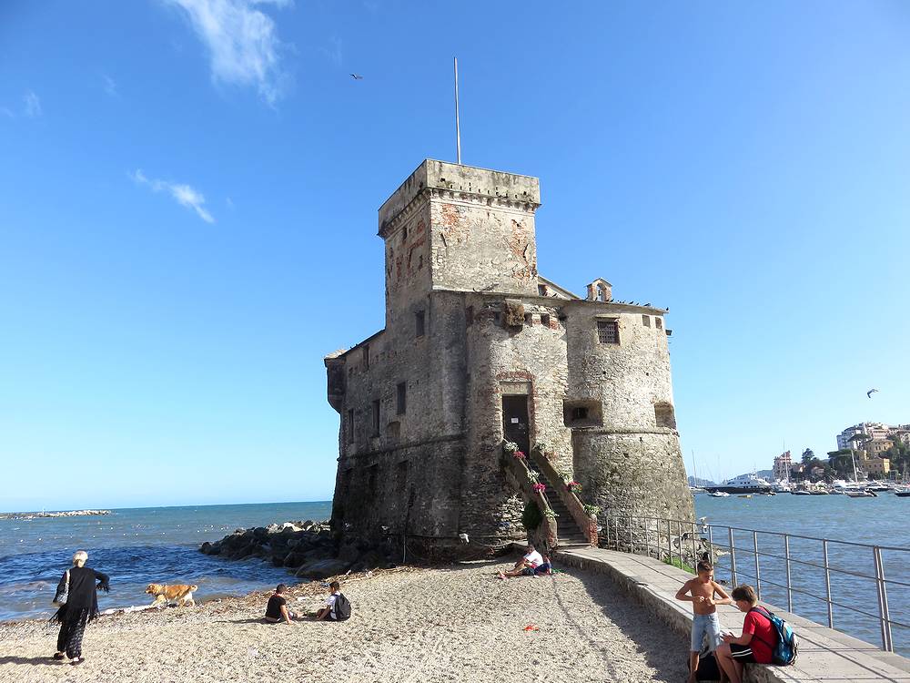 ラパッロに一泊して箱庭のように美しいポルトフィーノを訪れました。当初船とバスのどちらで行こうか迷いましたが、早朝のほうが順光で写真が撮れるということがわかったので、駅前から出ているバスでいくことにしました。誰もいないテラスからポルトフィーノのすばらしい眺めを撮影することがかないました。チンクエテッレへの移動も列車の本数が多く、便利ですし、街も小さくまとまっており、歩いて見て周れ、海沿いには小さなお城もあり、駅から10分ほど歩いたところにある、Montallegroの駅から出ているロープウェイの中からのティグッリオ湾の眺めもすばらしいです。ここは地球の歩き方にも載っていないので、日本人にはあまり知られていないようですが地元では有名なところのようです。山頂には美しい教会がありましたが、私達は最終の夕方5時半の便に乗ったので、残念ながら、教会内部の見学はできませんでした。ポルトフィーノやチンクエテッレ見学の拠点として最適なところだと思います。