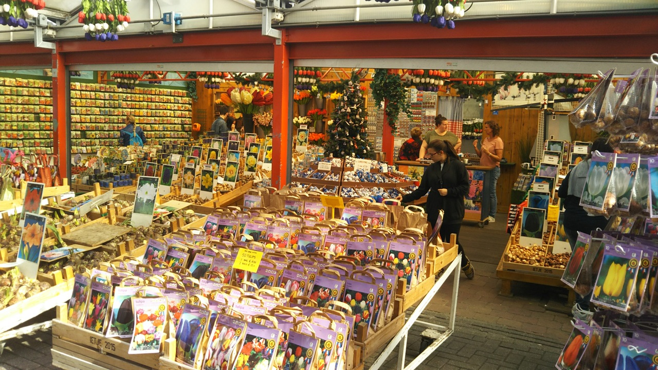 アムステルダム観光として街中を散策している途中でシンゲル運河沿いの花市に行ってきました。通りに多くの花屋さんがありましたが、どちらかというと花よりも球根や花の種を売っている感じでした。観光客の人が多くいましたが、買い物というよりも観光スポットとして眺めているような雰囲気でした。