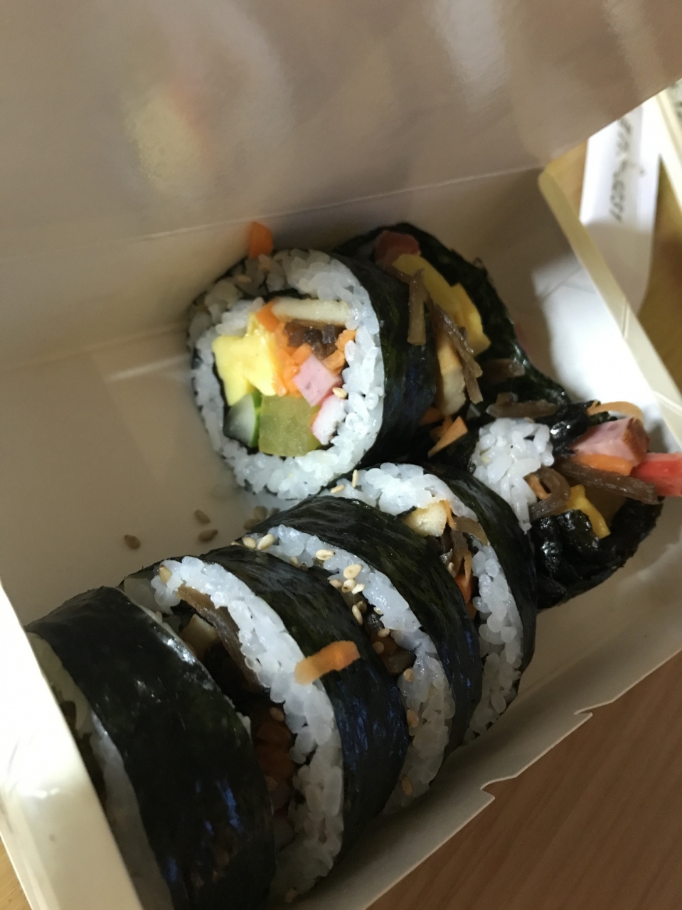 色々な所でキムパプを食べますが、やはり一番美味しく綺麗で安いと思います。お腹が一杯でも食べられます。私は定番の3500ウォンのキムガネキムパプが好きです。カツカレーやトッポキなど沢山の種類もあります。