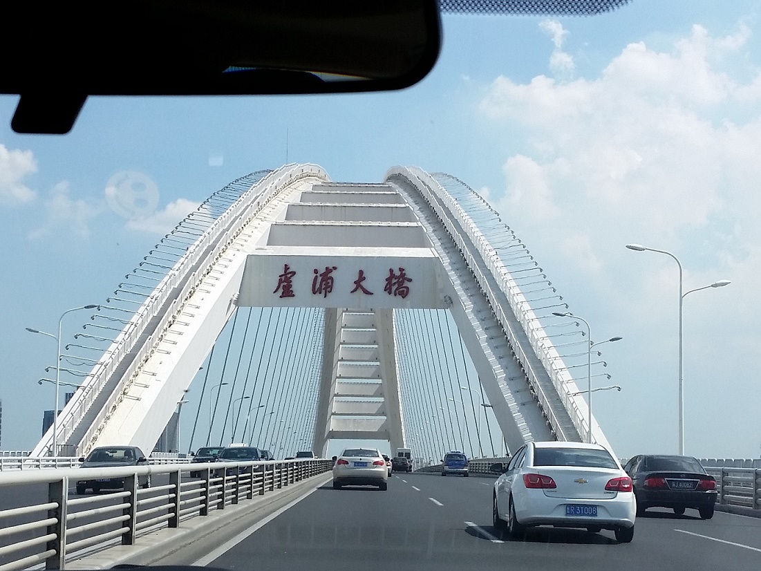 2010年の上海万博の時に上海を訪れた際に、空港からのタクシーが誇らし気にこの橋を渡って万博のことを話してくれたことがありました。あれから7年後、車でこの橋を渡る機会に恵まれました。眼下にはメルセデスベンツアリーナーや、万博跡地を活用した新しいオフィス街が出来ていて上海の活気を感じることが出来ました。