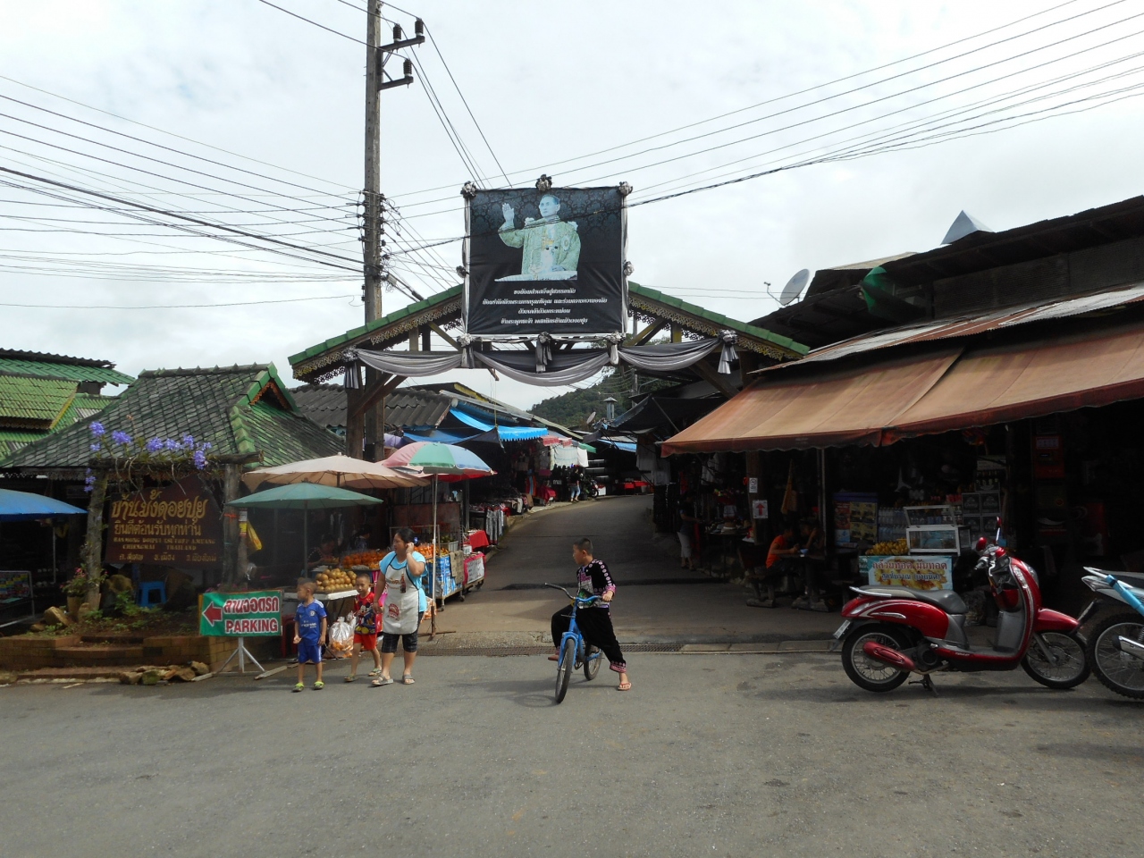 チェンマイ市内から20㎞離れた山奥にある山岳民族の村です。駐車場からいきなり道の両脇に商店が並びます。果物や民族衣装やシルク製品が市内のナイトマーケットよりかなり高い価格で売られています。いささか観光用の村になっていますが、しつこい客引きがないので安心してみて廻れます。村の奥まで歩いて行きましたが、住民もほとんど我々には関心がありません。挨拶すれば挨拶を返してくれます。自由に見て行ってよという感じの村でした。なお、電気や水道もちゃんと通っていて、宿泊施設(私は泊まる勇気はありませんが)もありました。