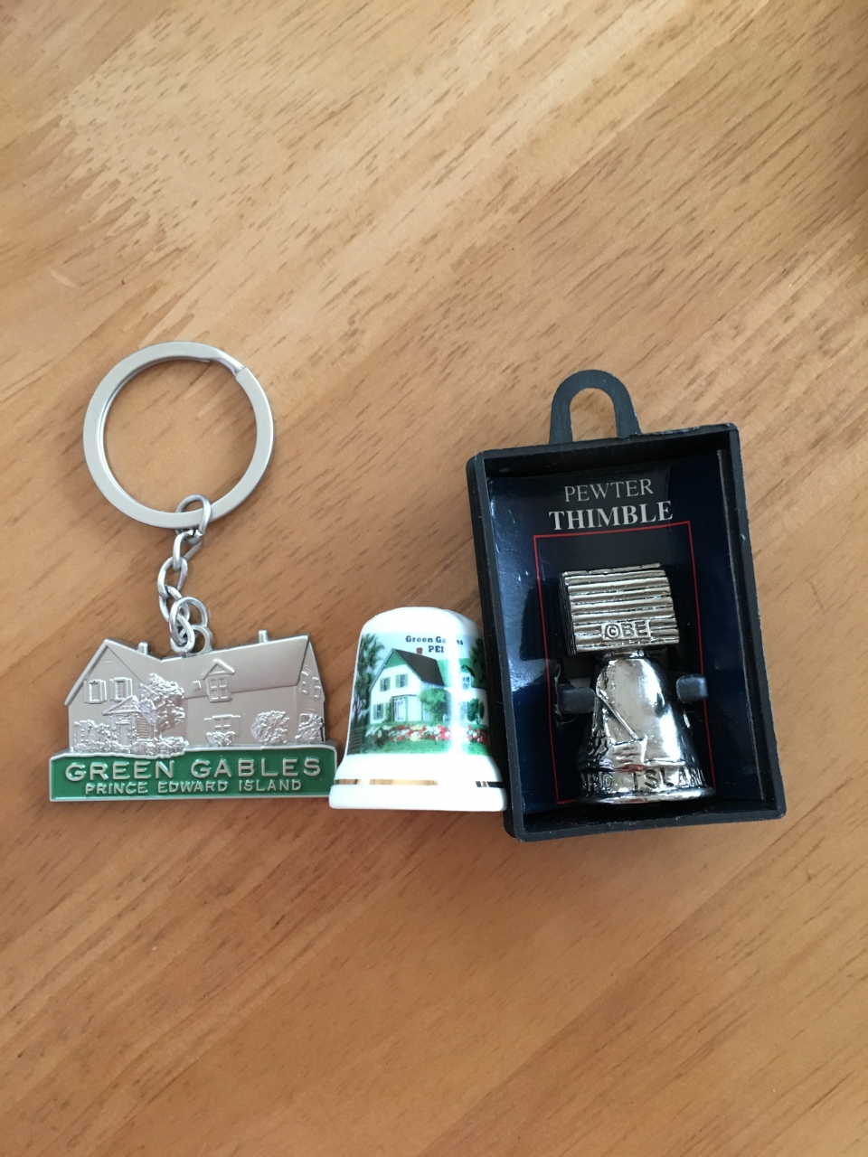 Avonlea VillageとGreen Gables近くとシャーロットタウンの3か所にお店があり、全部行ってみました。感覚的には、Green Gables近くの店が一番品ぞろえがよかったような気がします。Green Gables指ぬきとキーホルダーおよびTシャツをGreen Gables近くの店で、ロブスターとロブスタートラップの形がついた指ぬきをシャーロットタウンの店で購入しました。