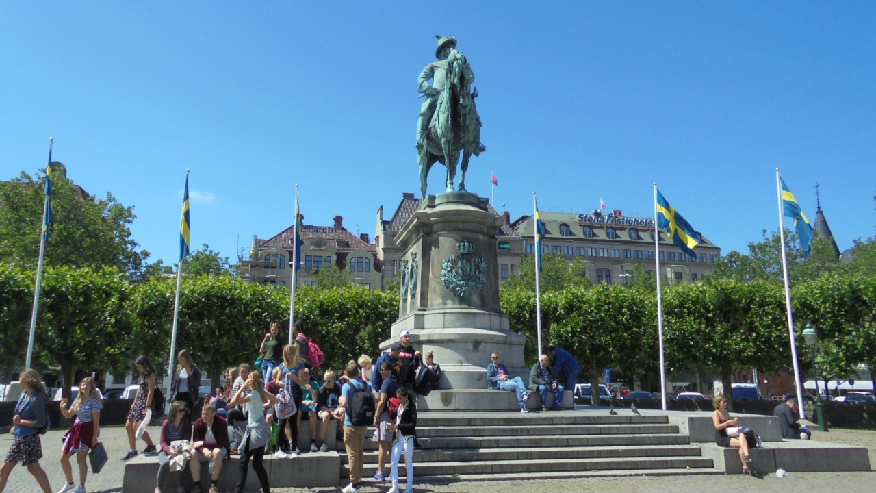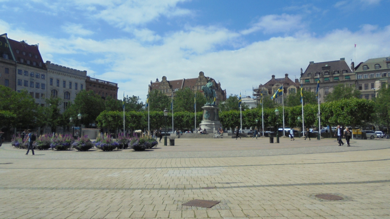 付近にはスウェーデンとの領地争いに勝利したカール10世グスタフの銅像もあり,食事ができるカフェもたくさん。