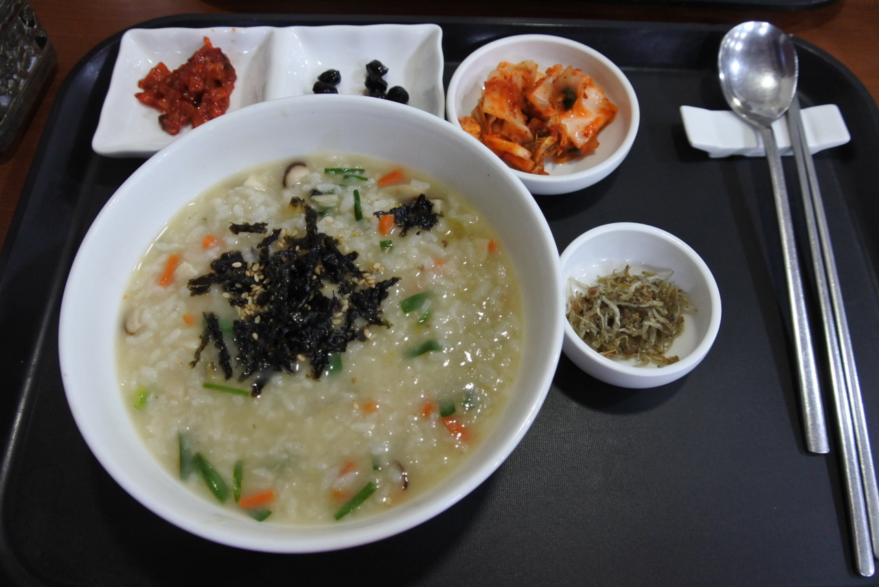 飲食店の並ぶ通りのお粥やさんで朝ごはん。