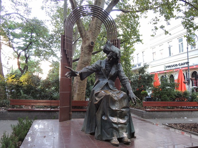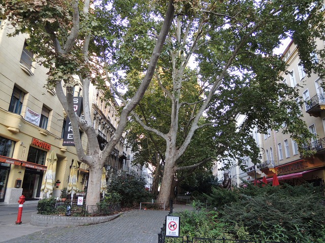 アンドラーシ通りのオクトゴン交差点から南に30メートルほどの距離にある細長い広場です。大きな街路樹が植えられた公園の両側には若者に人気のあるお洒落なカフェがたくさん並んでいます。リスト音楽院に近い一角には、大きな手で目に見えないピアノを弾くリスト像が置かれていました。