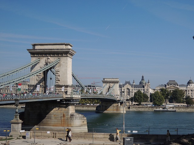 ブダペストを代表する堂々とした橋で昼も夜も楽しめます。昼間写真を撮るなら、ブダ側のケーブルカー乗り場が絶好の撮影ポイントです。くさり橋と対岸のグレシャム宮殿が上手く撮れます。夜のクルーズ船からは、ライトアップされたくさり橋と王宮が暗闇の中に幻想的に浮かび上がります。