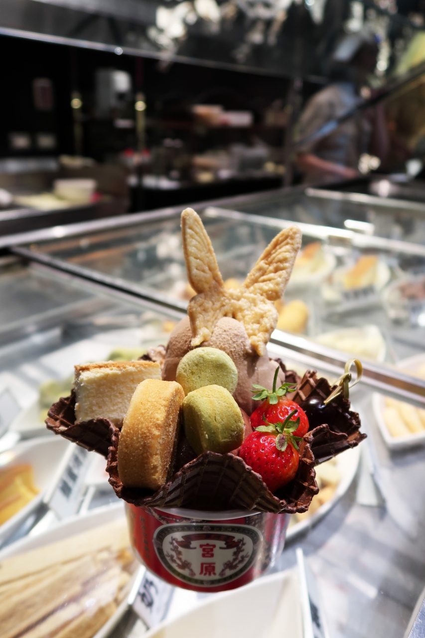 フルーツや台湾茶、チョコなど、選びきれない程の数十種類の中からアイスを選んで(たくさんありすぎるので、ネットで予習しておいた方がいいかも)、さらにパイナップルケーキやチーズケーキ、クッキなどをトッピングしてくれます。