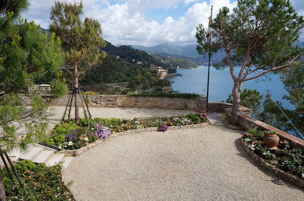 ポルトフィーノの波止場から坂道を10分程歩いた高台に立つお城というより要塞です。入り口で入場料を5ユーロ支払い入城しますが、内部は特に見るべきものはなく、お目当ては建物奥の庭の崖の上に作られたテラスからの眺めです。サンジョルジュ教会のテラスからよりも、正面から港や町を見下ろすことになるので、よりすばらしい景色を見下ろすことができます。さらにラパッロやリグリア湾も遠望できます。なお城内は暗くて、トイレもありますが、入り口がわかりづらかったです。港への帰りは、坂道を戻っていく途中に波止場に直接下りる急な階段があり、そこを下るとすぐに港に出ることができました。