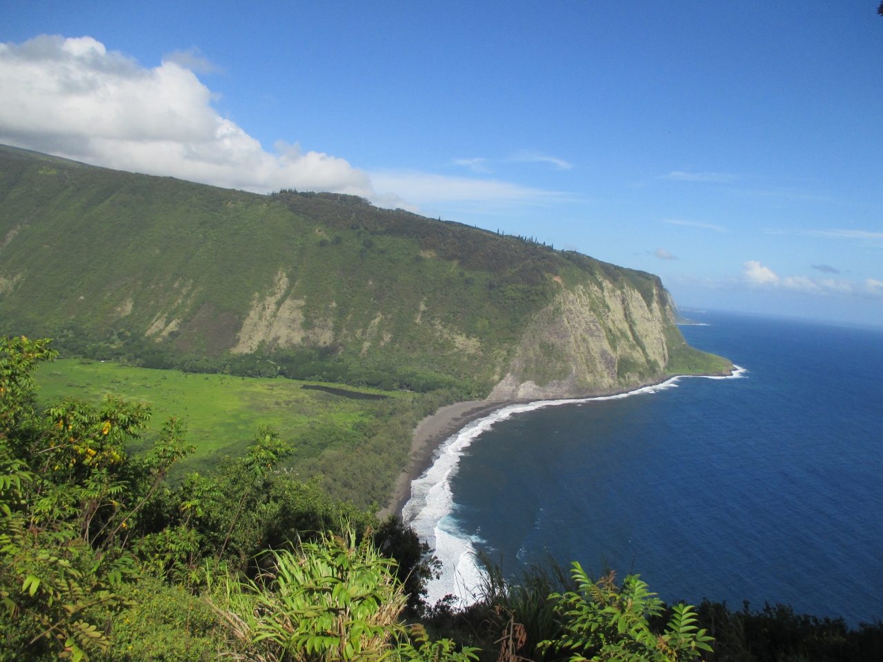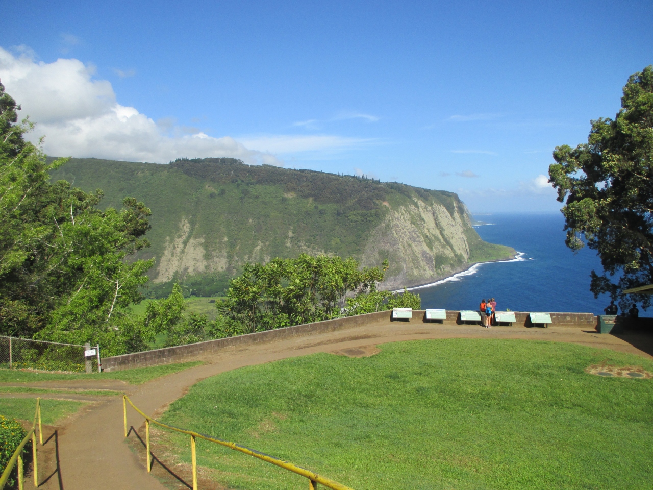 コナ空港から1番はじめに向かったところです。ホノカアを通り、さらに北へ進めと到着。朝早くに行ったため、ほとんど人がいませんでしたが、駐車場の数が少ないです。ここから谷は見づらかったですが、自然の壮大さを感じました。説明書が書いてあるところ案内板がハワイ語と英語のみですが、歴史を知れました。