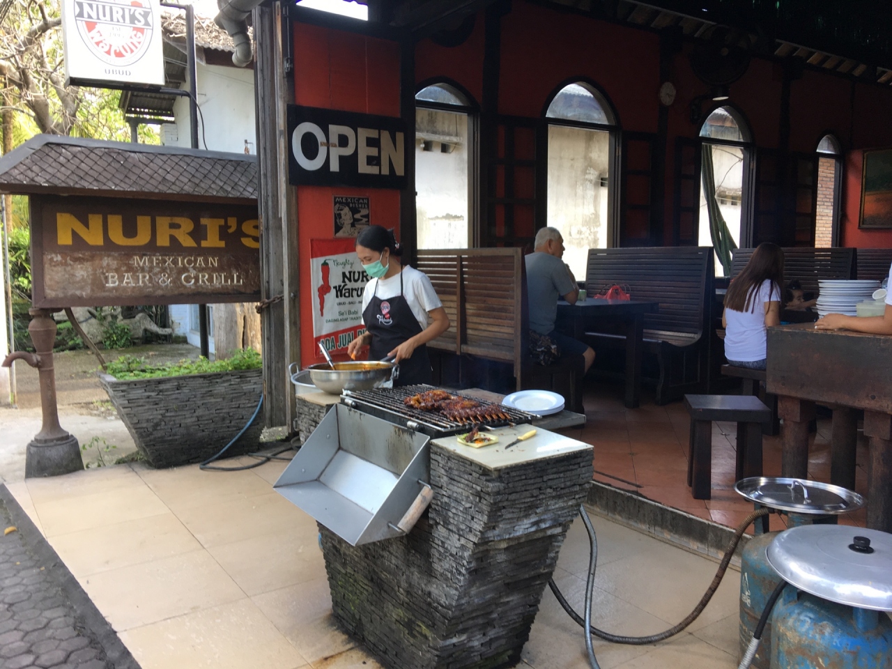 ウブドの中心からは少し離れていますので、バイクを借りて出かけました。注文すると、相変わらず、店先の炭火で焼いてくれます。付け合わせのマッシュポテトも山盛りで出てきます。甘いソースに絡まったスペアリブはやみつきになります。