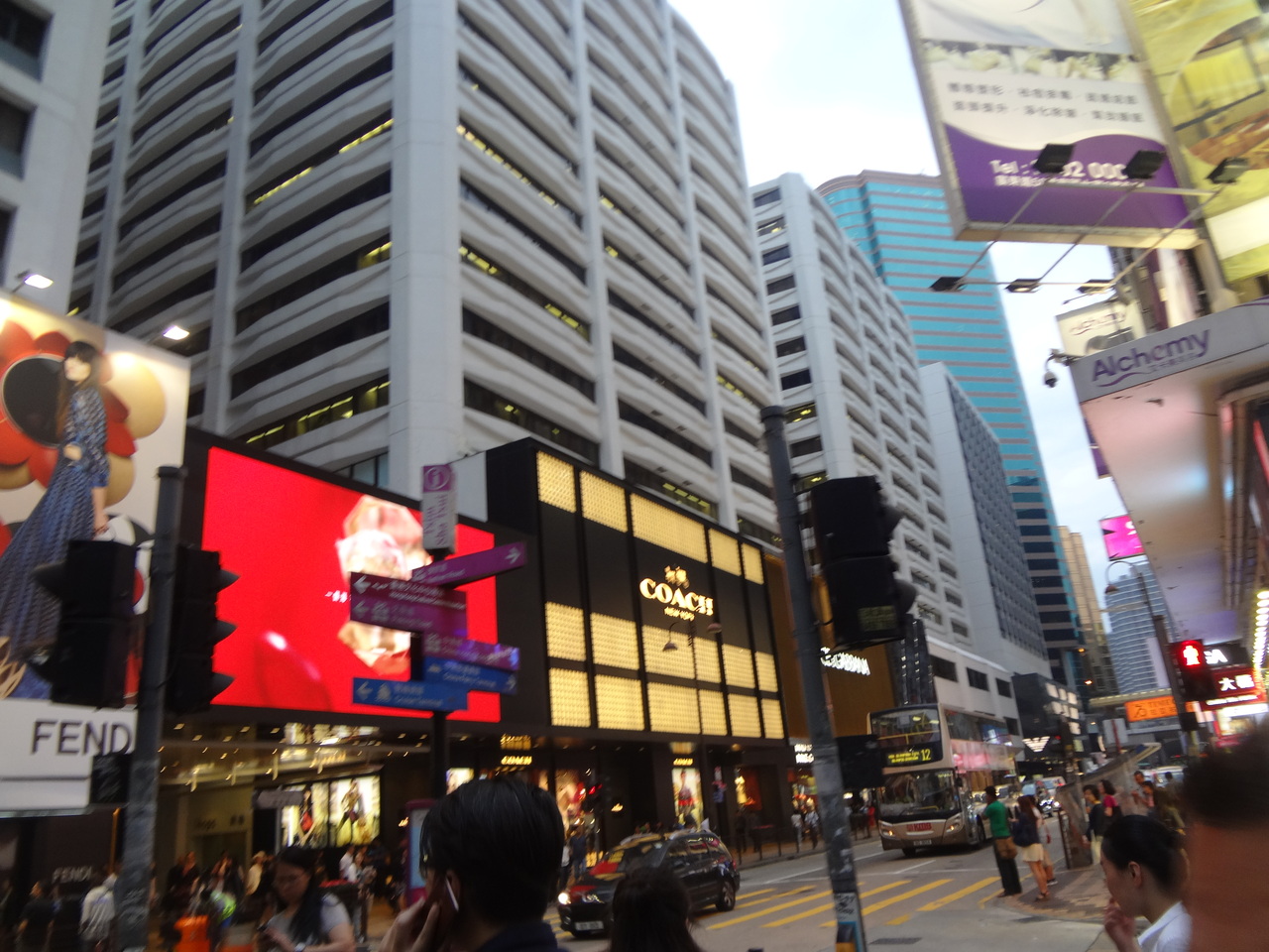九龍公園側からブランドショップが立ち並ぶあたりを夕方散策しました。特に買い物をしなくても、店先のいろとりどりのネオンがとてもキレイで歩いているだけでワクワクする通りです。スターフェリー乗り場の手前にはヘリテージもありとても華やかな雰囲気を楽しめます。