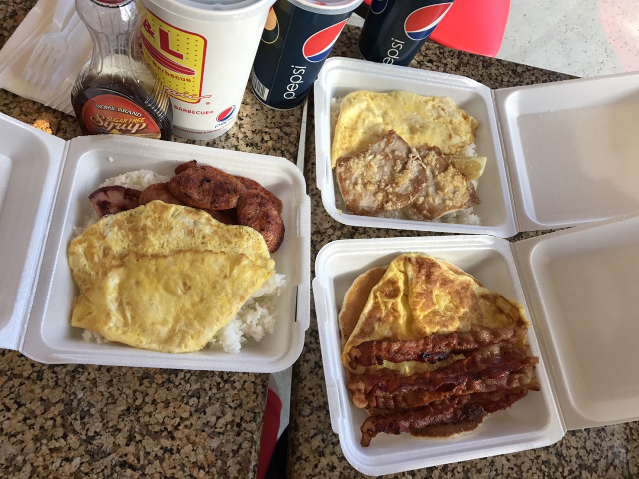 ハワイ島からオアフ島に移動する日も、余裕を持って利用できました。利用者は、ロコの方ばかりで観光客は、我々だけでした。ワンプレートでボリュームもあり美味しくいただきました。2日目は、息子がハッシュポテトがたべたいとのことで行きました。コストパフォーマンスは、バッチリでした。